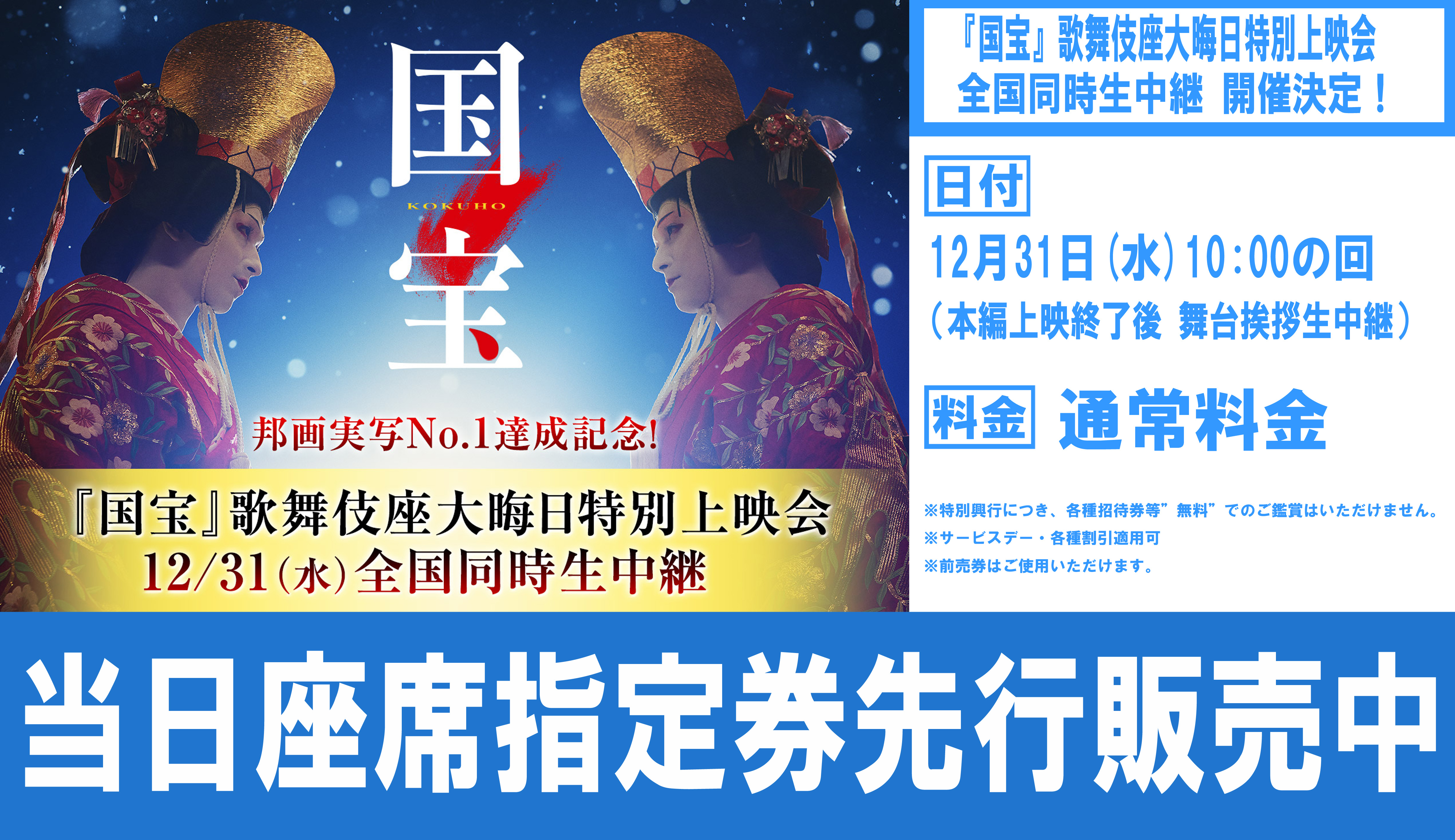 スケジュール確定分の座席指定券を上映日の2日前よりインターネット、劇場窓口にてご購入いただけます。
